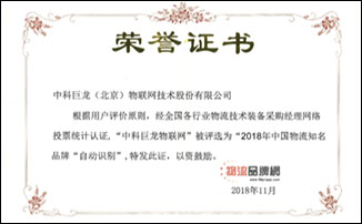 熱烈祝賀中科巨龍被評(píng)為《2018年中國(guó)物流自動(dòng)識(shí)別領(lǐng)域知名品牌》